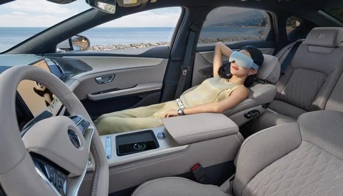 内饰方面,长续航版改用怀挡换挡机构,原换挡区域调整为双手机放置区,中控物理按键简化为单排布局。车内饰板由高光黑调整为哑光材质,高配车型新增双拼色方向盘及车载冰箱。